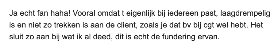 "Ik heb lang gezocht naar iets wat én evidence-based is én past bij mijn holistische kijk. Deze cursus biedt het allebei. Niet te zweverig en niet te nuchter. Top combi jouw energie!"